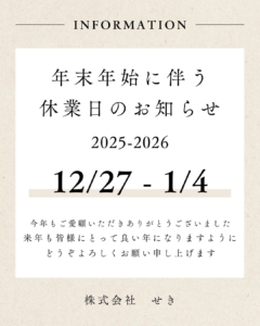 年末年始に伴う休業日のお知らせ